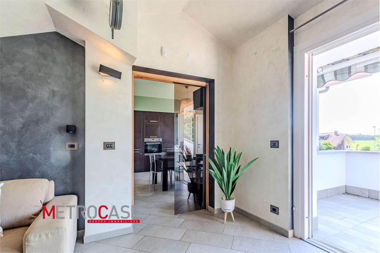Questa casa esiste davvero. Si trova a Poirino, in Via Fonte Antico, in zona residenziale tranquilla, al primo piano di un contesto raccolto e riservato, con spazi ampi e sapientemente distribuiti: