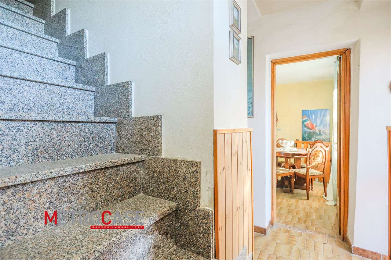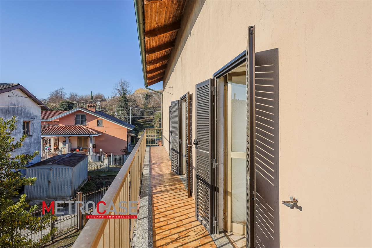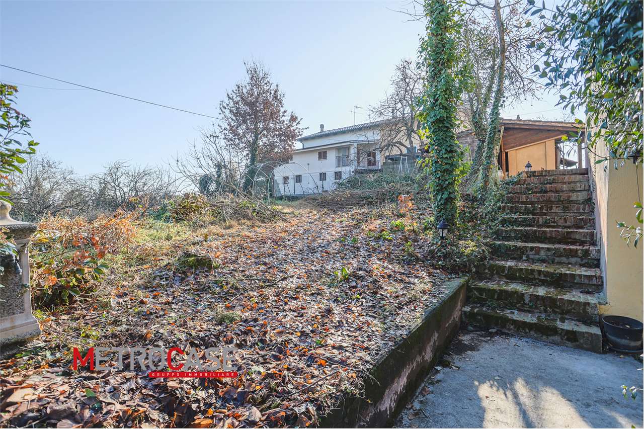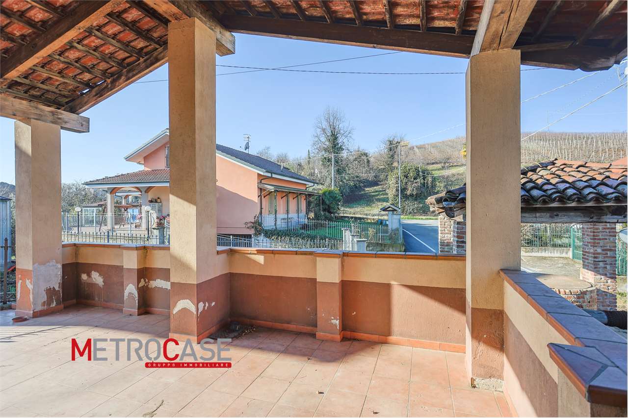 In posizione collinare casa indipendente con giardino di circa 600 mq recintato così composta: piano seminterrato; box auto, 2 ampi locali e tipico "crutin" interrato; 1p. 2 locali con bagno e 2p. 2 locali con bagno. Posizione tranquilla!